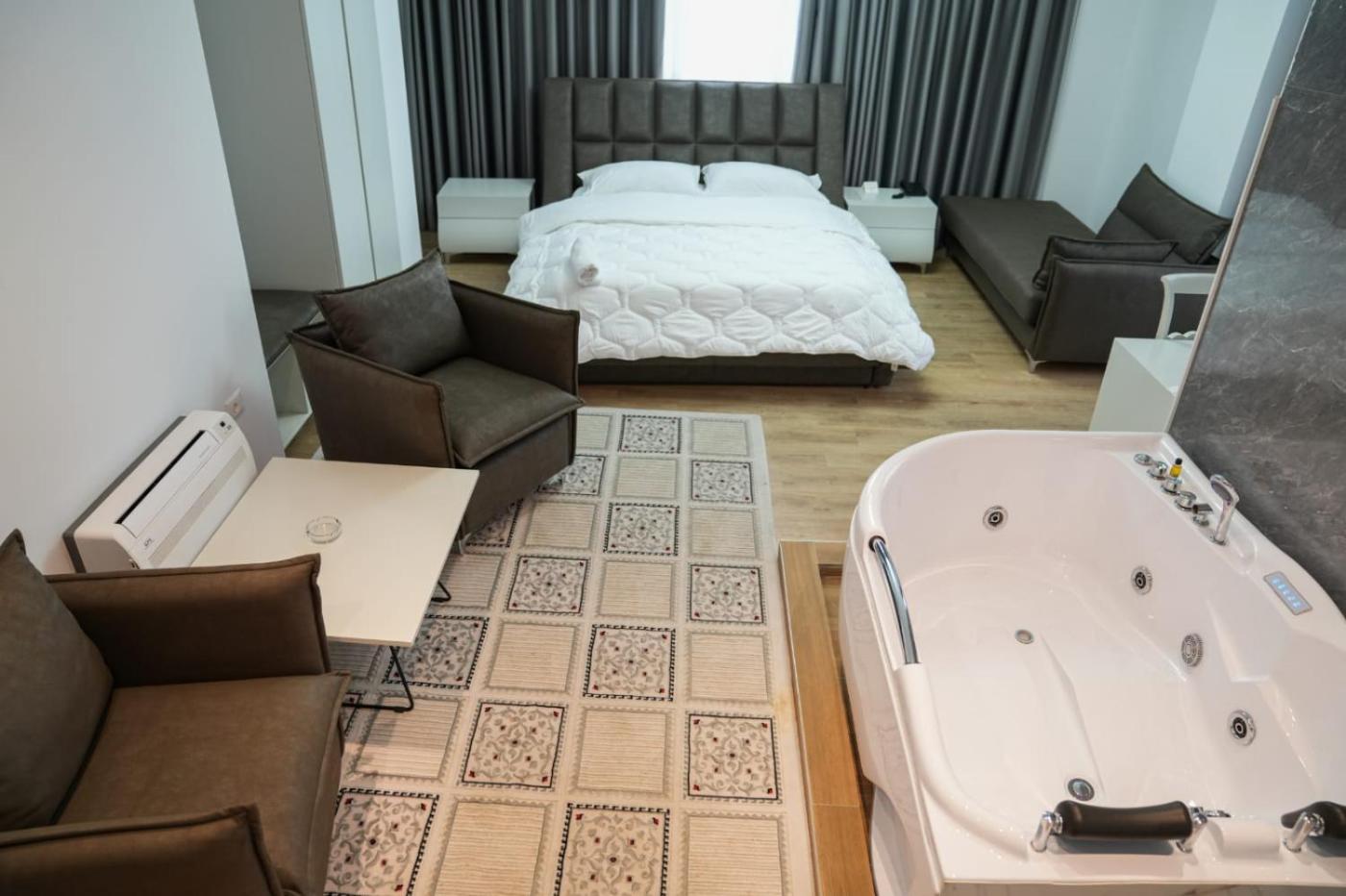 Suite with Hot Tub. The air-conditioned suite features 1 bedroom and 1 bathroom with a bath and a shower. Featuring a balcony, this suite also provides a tea and coffee maker, a wardrobe and a flat-screen TV. The unit offers 1 bed.
